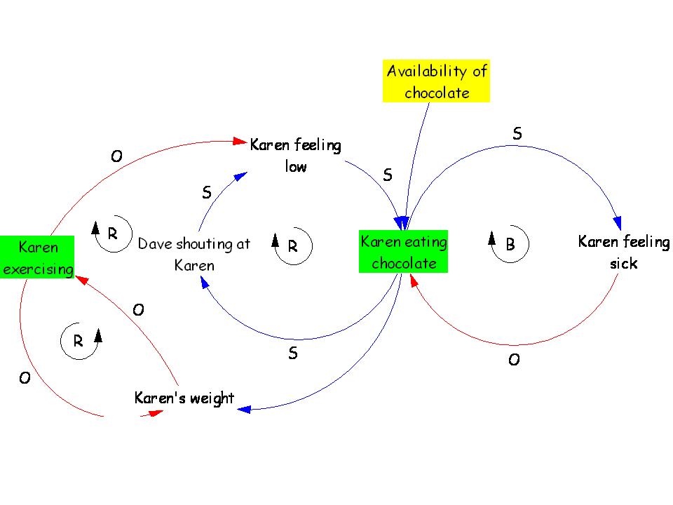 Here is another example of a problem between two of my friends, Karen and Dave. Karen and Dave are partners but they had a problem they both helped to create. The symptom was Karen's weight. The causes were multiple.